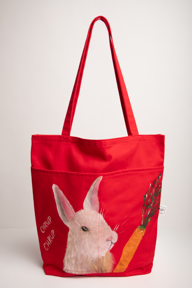 Ręcznie malowana torba na zakupy – KRÓLICZEK